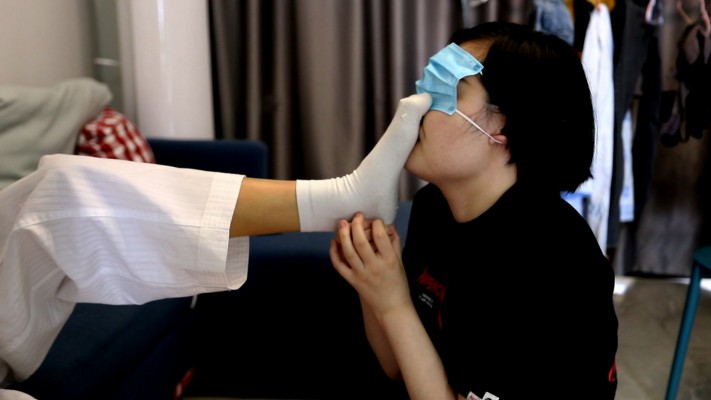 惑心跆拳道原味白袜虐女奴,臭袜子虐脸给女奴闻,踹肚子踩裆,跺踩跳踩