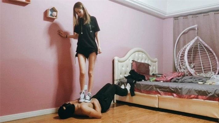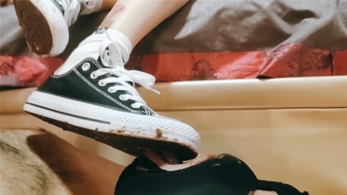 舔脏鞋底,帆布鞋,鞋底泥,插嘴深喉,踩踏,辱骂,口水,白棉袜踩踏。
