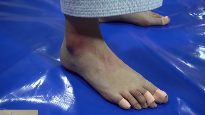 跆拳道美女Lxue每天要做很多工作,脚非常臭。为重病的弟弟挣医药费。她在去拳击馆的路上不小心扭伤了脚。通过自己的努力,她得到了老板的赏识,获得了在拳击馆工作的机会。但她不知道有些人经常来拳击馆找麻烦… 她虽然伤了脚,但仍然用她的脚狠狠的教训了踢馆的,狂踢了半个小时踢馆的贱人被踢傻,疯狂的踹肚子,踢脸。 最后最后用她已经出了很多汗的裸足连续踢脸KO
