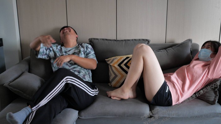 纯恋足短片,第5风格小清新恋足片系列,沙发上舔小F的白嫩脚,全程语音交流,包括笑场