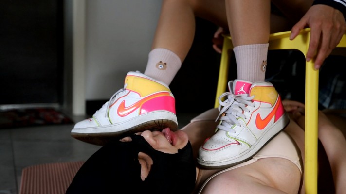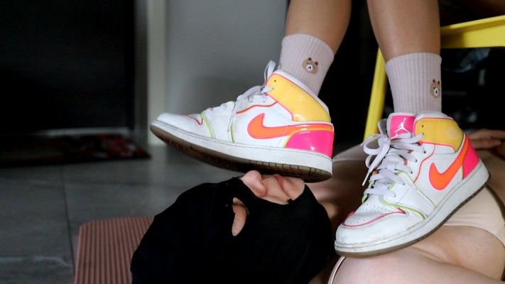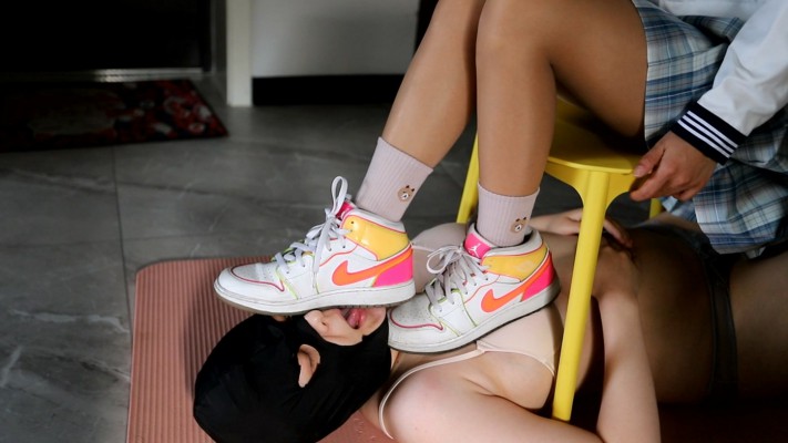 芊芊JK配上AJ,踩着母狗脸舔鞋底,闻鞋里面闻袜子,臭袜插嘴里给她舔,还敢用牙碰我的脚,一顿凶狠的脚耳光直接抽懵逼了
