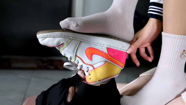 【芊芊】JK配AJ 臭袜插嘴脚耳光