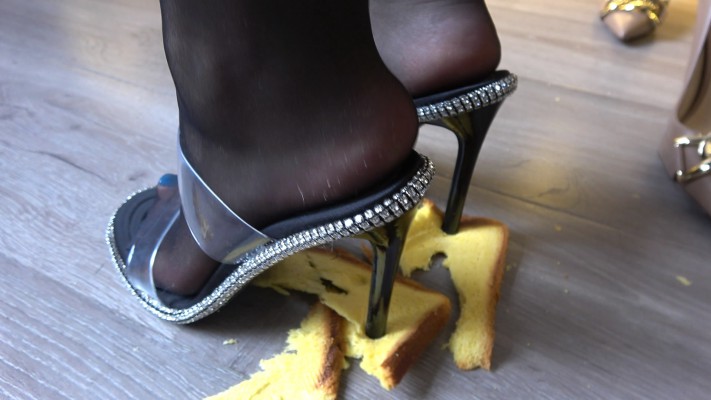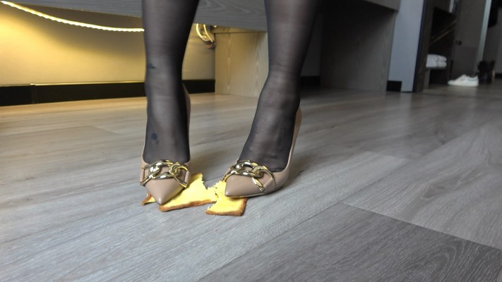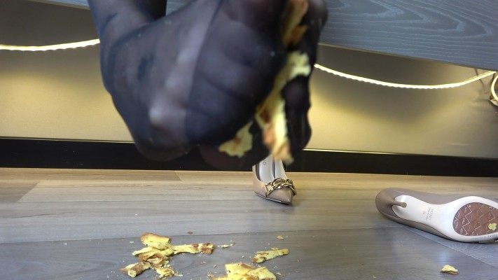 高跟踩面包,黑丝脚踩面包制作食物,挑逗羞辱喂食面包