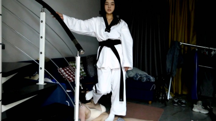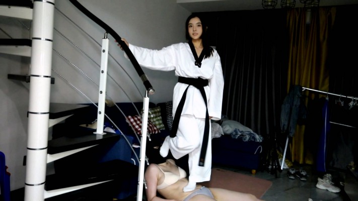 【芊芊】跆拳道女主臭脚白袜爆踢活靶母狗