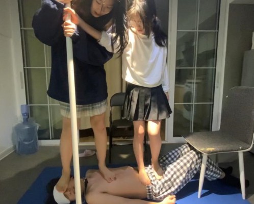 毯子舔脚打耳光,满屋子都是两小姐妹的笑声 ( 视频分为双视角,近景远景两部分 )