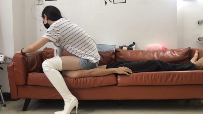 【内容简介】: 邻家风广州小鱼姐姐白丝高跟长靴全体重踩踏奴隶,踮脚踩脖子,跪压脖子,舔舐鞋跟,全体重踩下体,鞋跟踩入下体,坐奴隶身上羞辱。