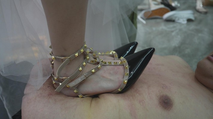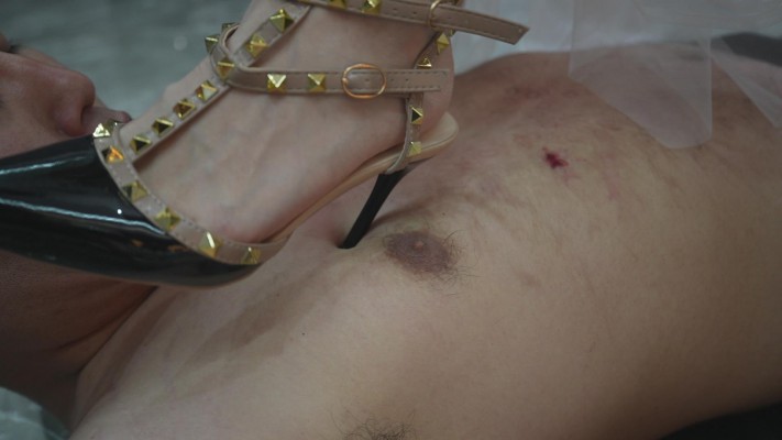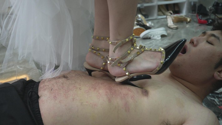 挑战我自己前面拍过的那部史诗级高跟踩踏,齐齐的这部伤口循环高跟碾踩,没有更好,只有最好,她擅长的麻木羞辱是大家最爱的一点,无时无刻不出戏地把我们代入到真实的当狗 氛围中,青春的脸庞残忍的手段也是让所有狗心甘情愿死她折磨之下,如果上头了,你就死定了。只是开头不久,锋利的高跟鞋就把M胸部撕开一大块肉,血红的伤口狰狞恐怖,肉粒都浮漏在表面清晰可见,齐齐接下来就是高跟全体重站在身上同时,再用另一只锋利的高跟无限地碾,无限地踩,无限地去划那个伤口,动态图中M绝望的表情,是恐惧,还是生无可恋?由于高跟的锋利,当每下一脚踩一下,深深的鞋印清澈呈现在白皙的皮肤中,鞋印中范着血印,范着破皮,半个多小时,两个狗子完美洁白的身体皮肤被霍霍的满目疮痍,视觉冲击拉满到极致,再加上齐齐无敌的全程侮辱,又一神片降临!婚纱体现出女人是作为社会男性配偶的柔弱娇羞和美丽,但和她的凶狠残忍麻木不仁搭配出了一道视觉灵魂的反差风,一种说不出来的违和感。