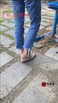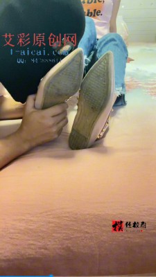 由于天气原因,在户外拍摄时,就已经发现她的短丝脚底全是汗液了