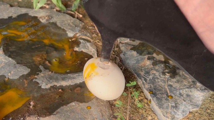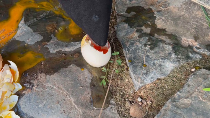 今天00后心情大好,准备去户外走走,看到地上有别人乱扔的鸡蛋就踩了起来