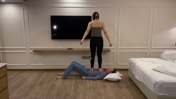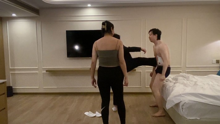内容:高兴儿女王 带着表妹踢m 踩踏 跆拳道侧踢 横踢 正蹬等高难度腿法 感受腿法推打的力量感 腹部的承受能力 和踩踏感受体重的压迫 中间 让m靠在墙上感受纯力量 还有踢倒在床上 起来在次踢到 强烈羞辱感和压迫感