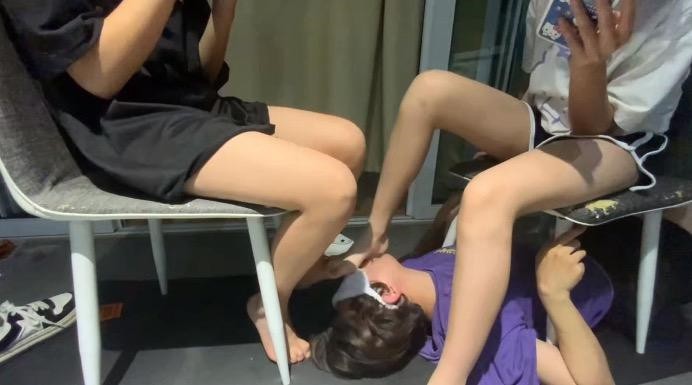 【文件预览及介绍说明】:两个小美女一边吃零食一边享受让贱狗轮流舔脚,夏天穿着运动鞋脚特别酸臭,还把狗头踩进鞋里让他呼吸,最后又让贱狗舔脚底,一起踩脸玩够了才放过他