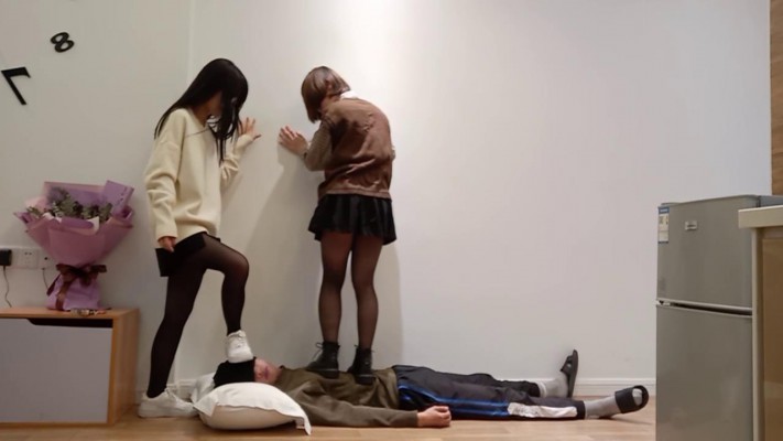 小宛和新人原味黑丝全体重踩踏,新人加入期待你的关注