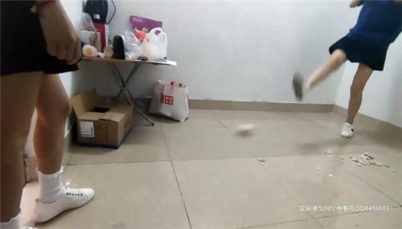 小鱼姐姐和雯雯小白鞋踢踩馒头砸中摄影