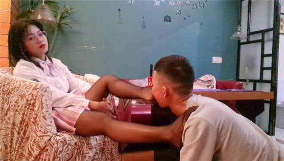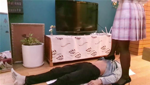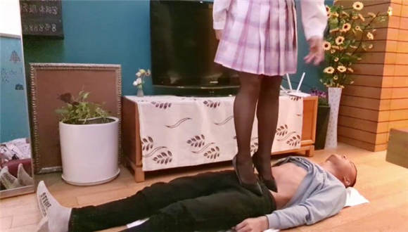 【00后蕬小乃】现实记录,黑丝高跟鞋全体重踩踏恋足