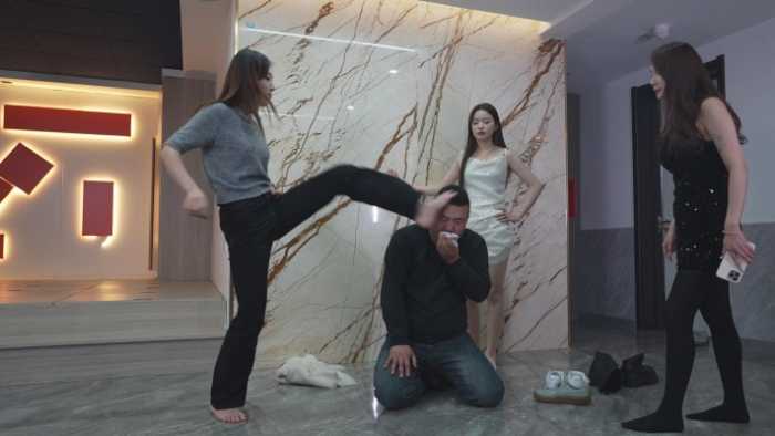 说话时真的要考虑后果,因为她们没有可怜狗子的概念,我猜狗子刚拍就后悔的肠子青了,(视频不是断拍,20分钟后相机过热自动停了一下,调教一直持续中,无停顿)一个接一个的全体重踩在头上不停,头部变色,能猜到每秒中头像爆炸的感觉,每秒的煎熬和疼痛即使不是自己被虐待都能清晰感觉到,借用一句电影台词: 看上去 感觉好疼! 轮番全体重穿鞋踩头,丝袜踩头,裸足踩脸后,接下来就是10分钟无止境的踹头,这时我敢笃定狗子的头是眩晕昏迷感觉要爆炸的状态,头部虐待绝对是国内天花板状态,没有之一!
