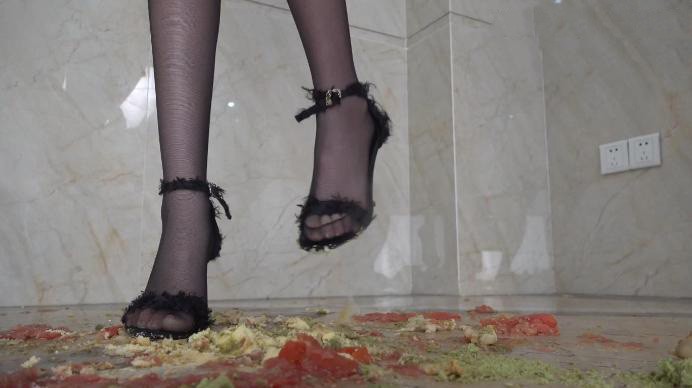【南国原创】雪儿女神黑丝高跟鞋踩踏食物,第一人称语言羞辱,身临其境 YC-241216