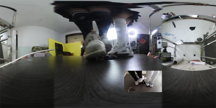 VR婧意双S全语言 学生装运动鞋长棉袜玩踩人脸地板 偷窥的代价