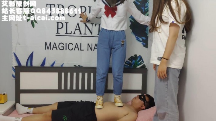 跟着姐姐来见识一下她养的家奴,两人穿着平时的匡威在毯子身上蹦跳,还互相攀比看谁跳的更高一些。