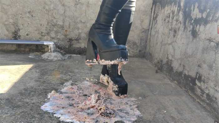 大美暗黑萝莉主 黑长靴踩蛋糕(送1分钟の鞋底展示+语言羞辱) YC-250103-3