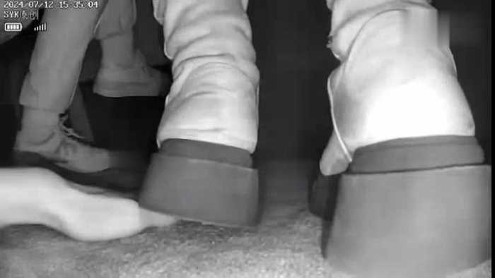 B753 – 无意识黑色长靴美女后伸踩全手 bf49171