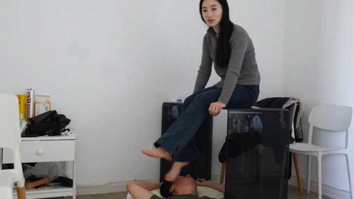 内容:首次新开发的素人苗疆美女秦歌调教脚奴,被脚奴清理脚底,脚深喉,坐在桌子上无意识晃动双脚拍打脚奴的舌头和脸。