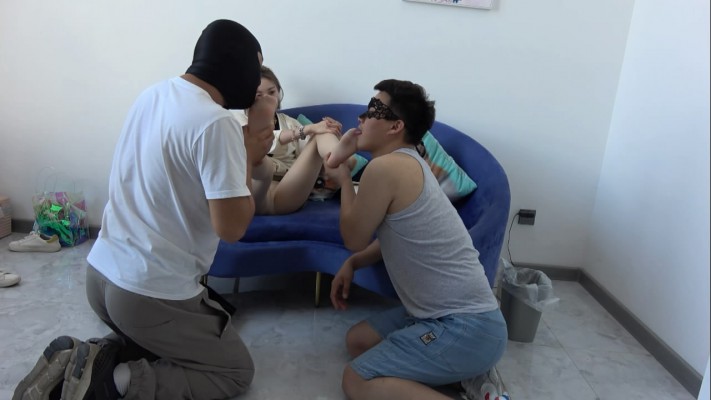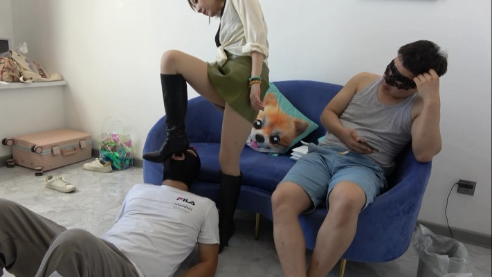 女主领着一个恭恭敬敬的男人回来,命令舔鞋舔脚,男人立马执行,男友疑惑问道怎么回事,女主说男人跟踪自己,男人是要劫财劫色的。然后让他无意间闻了闻自己的脚味,便成了现在这样,非常听话,随意控制,财产和命都可以交给我。男友问为什么,原来只要男人闻了女主的脚就会变成自己的奴隶,随意支配,这是女主的超能力。男友惊叹。女主就这样一直玩弄男奴。女主口渴了让男友倒杯水,可男友玩游戏不倒,女主很生气,命令男奴把男友按住,然后强行让男友闻自己的脚味,男友立马变得目光呆滞,然后去倒水,女主决定教育一下自己的男友,控制男友跪下舔脚,服侍自己,就这样女主把男奴和男友一起控制玩弄。最后警告男友要听话,男友目光呆滞的答应了!