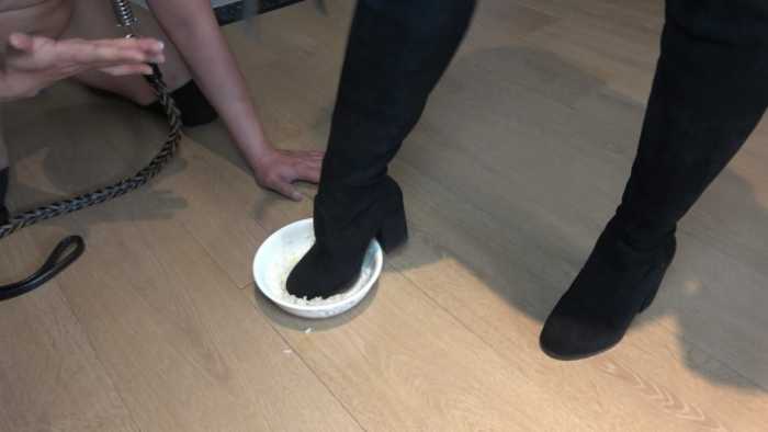 骑马,靴子踹头,踹身子,鞭打,圣水米饭,香痰吐米饭。贱狗米饭全部吃完。