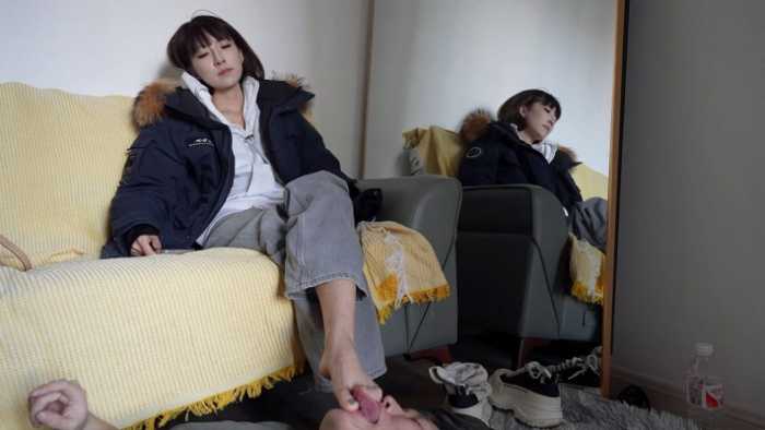 内容:高颜值桃子女王退圈一年后王者归来,这次是攒了一周的脚没洗,据脚奴所说舔起来都发苦了。脚奴拿了一瓶矿泉水把水含在嘴里给女王洗脚,把角质都软化以后拿上搓脚板清理脚皮和脚泥,躺在女王脚底下张大嘴把脏东西都接进嘴里。清理干净以后桃子女王用脚趾把脚奴舌头夹着玩,还用脚耳光扇脸,脚奴真是太幸福了。