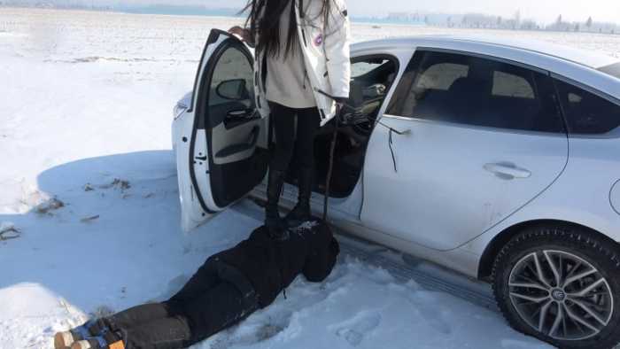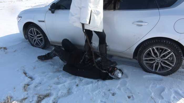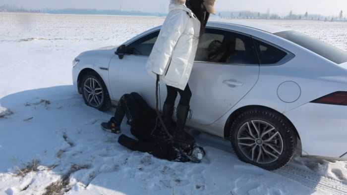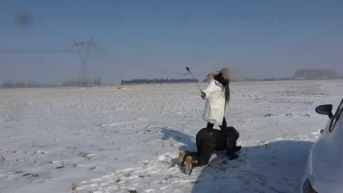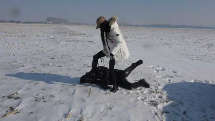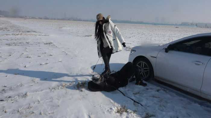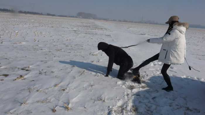 苒溪把贱狗拉到大雪地,零下二十度低温虐待贱狗,遛狗,骑马,踩踏,踢踹,耳光,玩的非常开心。