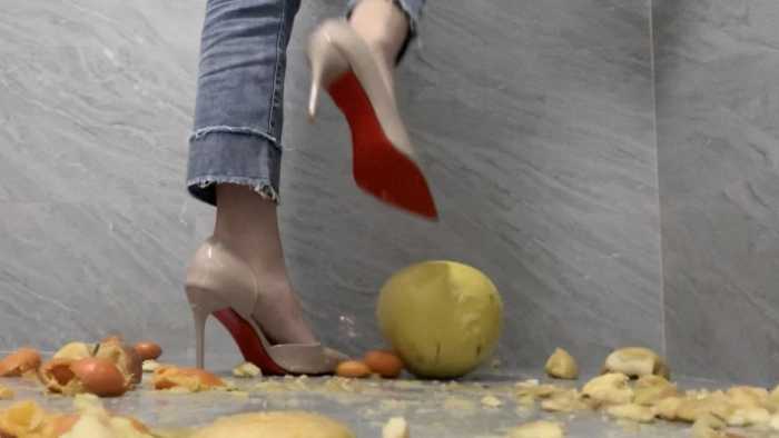 【莓子】高跟鞋加裸足暴力踩碎橘子、苹果、柚子 YC-250211-5