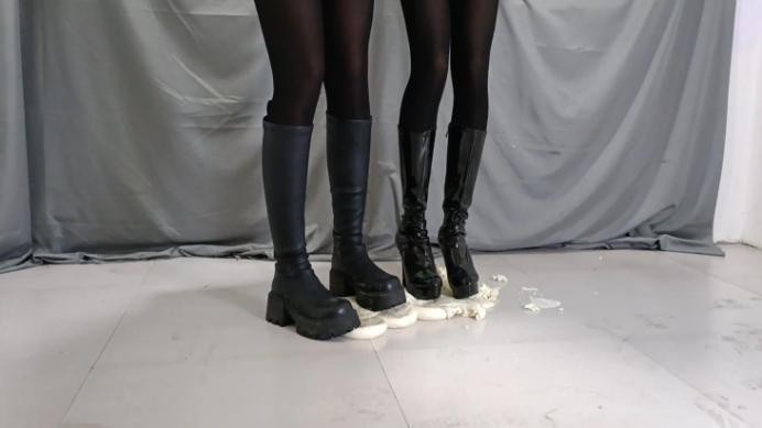 丽人馆,双S黑丝皮靴踩踏白馒头,馒头很软踩在脚下黏黏的感觉,可以擦鞋底YC-250222-4
