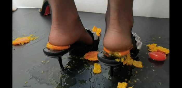 【内容简介】: 希子小姐姐为了满足贱狗粉丝的愿望,用高跟鞋和凉拖为制作了一份果酱,先用鞋跟把番茄“分尸”,又用凉拖把圣女果和沙糖桔挨个榨汁,最后用黑丝脚混合在一起,小姐姐累的香汗淋漓,和脚底的果酱混合在一起,别增了一丝风味。