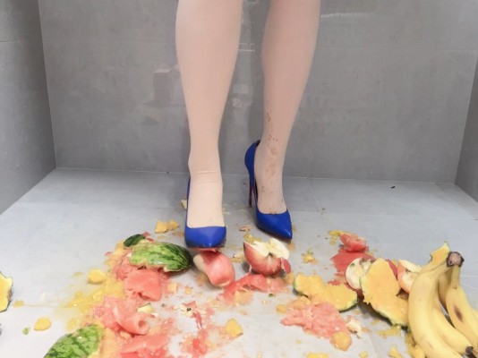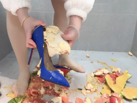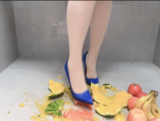 详细内容介绍:肉丝搭配蓝色红底高跟鞋,在西瓜上戳洞踩碎,番茄和苹果我也不放过,统统化作脚下的水果碎片吧!然后香蕉剥皮放入鞋内,踩上去,感受香蕉泥在高跟鞋内鞋外流淌。最后用麦香面包片擦净丝袜脚和高跟鞋。