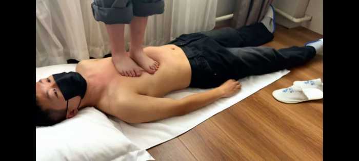女主- -边和我聊天-边踩肚子,肚子全程放松状态,女主刚踩上来的时候,肚子里面都在咕噜咕噜的响,里面像有水一样,每踩一脚都会响- 下,竖着踩在肚子上,肚子也会完全陷下去,女主还讲同学被骗,踩在胸上,有种窒息的感觉上不来气,还问我踩在脖子上什么感觉,还用脚后跟踩翘在我的肚子上,肚子完全被陷下去了。