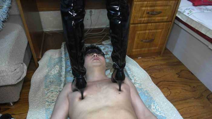 小文S高跟皮靴踩踏贱狗乳头,踩踏肚子,羞辱贱狗,贱狗乳头早已出血,痛并快乐着。