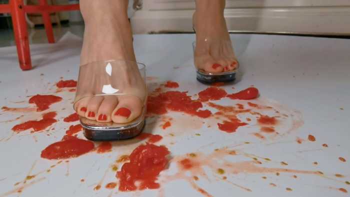 【内容简介】: 希子透明高跟鞋跺踩小番茄,再用裸足制作番茄酱,超近视角特写,宛若身临其境在希子脚下。
