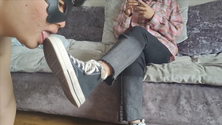 简介:此片基本没有对话,M在认真给女主舔鞋底,女主翘着腿自己在玩着手机,也不看M一眼,仿佛是真正的洗鞋机。