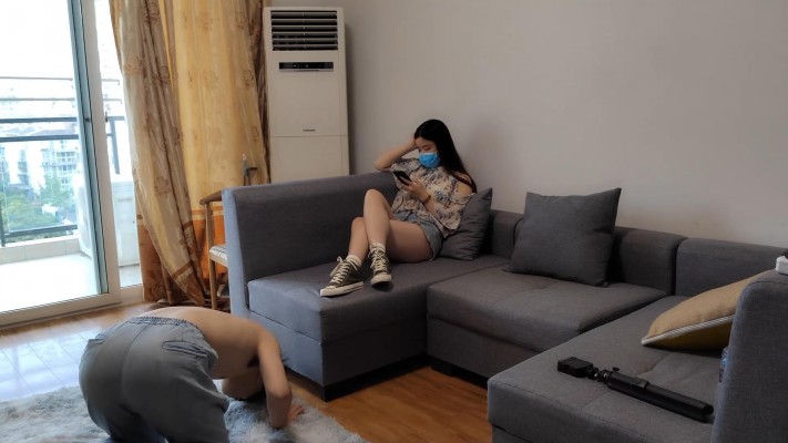 内容介绍:酱酱给男朋友打电话见面提分手,男友哀求酱酱,希望能在给他一次机会,便跪在地上磕头,酱主看他的贱样子,就让他自己选择是当酱主的狗还是现在就滚。