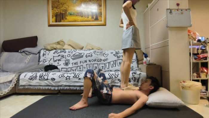 安安帆布鞋和裸足跳踩贱狗