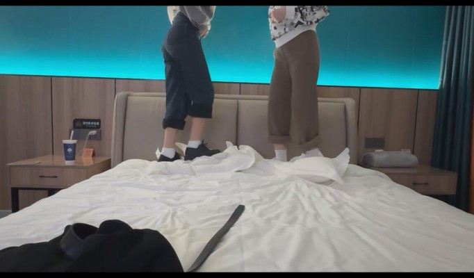 【素人研究生】研究生与闺蜜双人踩枕头(远景) YC-250608-2