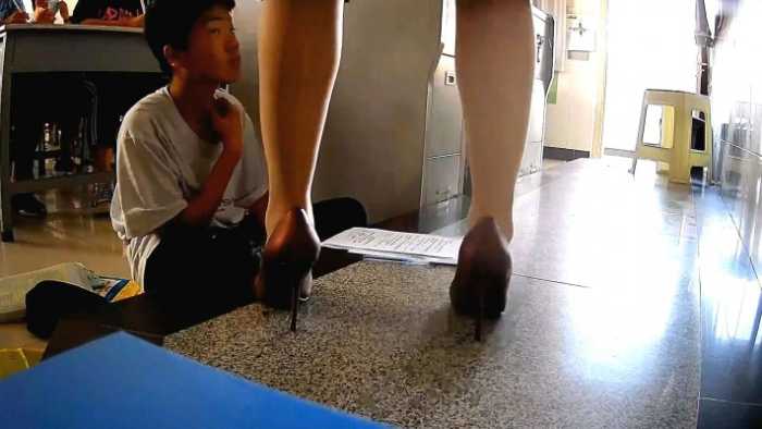 “老师在讲台上挑着高跟鞋给你讲课,同学你在下面鬼鬼祟祟的做什么?……肉丝高跟女老师在教训学生,训完后转头回去对着镜头挑鞋展示酸臭出汗的丝袜脚底,老师居然还把穿了半个月没洗的酸臭高跟鞋甩给你拿去用~”