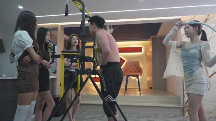 四女主轮换着充盈的体力乱轮抽打直播M,貌似是给男孩一点点甜头,却用可悲的抽皮扒骨换的,鞭打中其它女主持续向捆绑中的人脸哀嚎中的狗头吐着腥臭的浓痰,满脸白花花的黏液拉丝往下掉确实让人看后生理不适,
