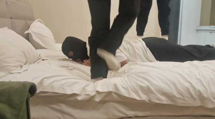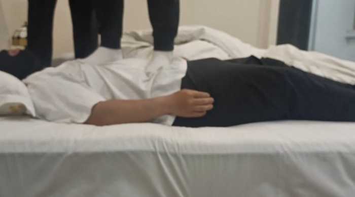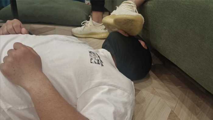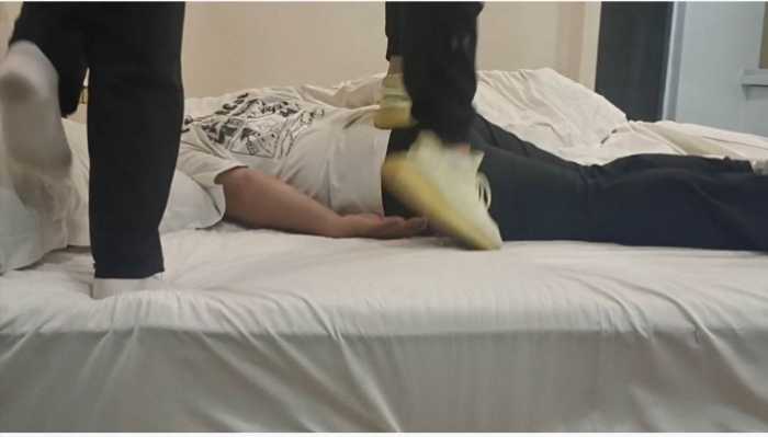 【简介】真实初中小妹小婷和小涵的暴力踩踹,双人双打在贱狗身上跳踩像是踩毯子一样。贱狗的腰部和头部疼了好几天根本不把贱狗当人看待,所有的不满一下子发泄出来了。给贱狗清脆的耳光,贱狗想暂停休息休息女主们说不行非得踹到贱狗服了为止。然后逼迫贱狗舔鞋子把鞋尖插到贱狗的嘴里使劲摩擦,然后赏赐贱狗闻她们的白袜臭脚又酸又臭还带有一丝的香味让贱狗欲罢不能在让贱狗从胯下爬过去,最后吐口水吐到杯子里最后让贱狗喝掉太羞辱了。非常刺激非常暴力。希望大家喜欢。(有动态水印)