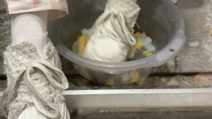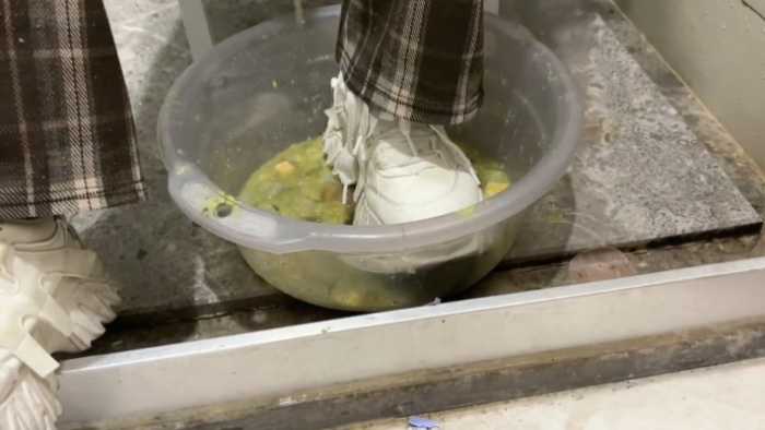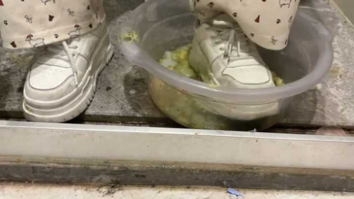 内容:三位小姐姐一起制作的水果罐头,全程踩罐头,一直吐嘴里嚼过的食物,吐口水,全程语言羞辱,最后打包寄给了小狗,听说小狗吃的非常开心