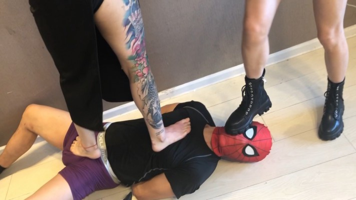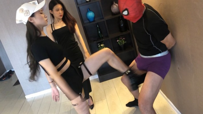 内容:两位狠角儿S 小Q和媚儿身穿性感干练服装,一人皮靴一人高跟鞋,对男M蛋蛋施展出各种凌厉的踢击和腿绞。高踢、跪踢、全体重踩踏,以及最后的强力大腿绞杀,都是吸睛的亮点。