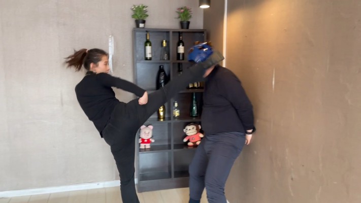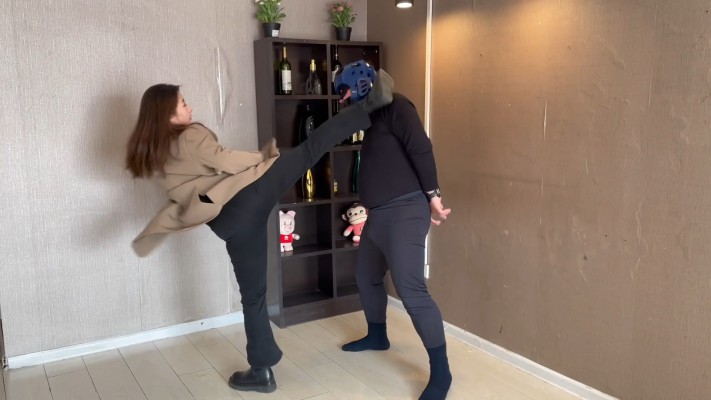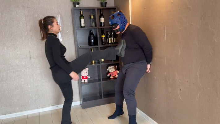 内容:又是一部黑带跆拳道姐姐加盟拍摄,只不过本部没有穿上跆拳道道服,小姐姐蔷薇亲力亲为,为广大女性爱好者详细讲述了如何防身踢废色狼,以高踢击头、前踢踢裆等重度腿法来演示,最后看上去很壮实的男M在她的脚下也成为了沙袋一样,最终被踢成了废物。(踢头部动作时候幸好有护具,不然女神的力度真的能被踢成植物人了。。。)