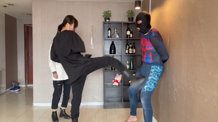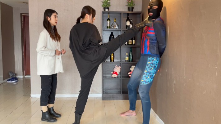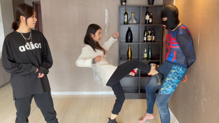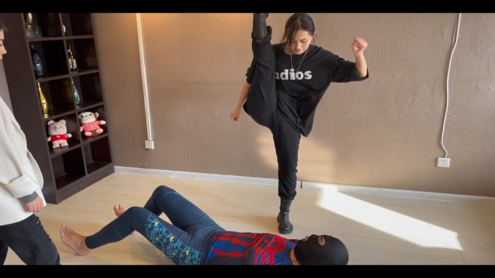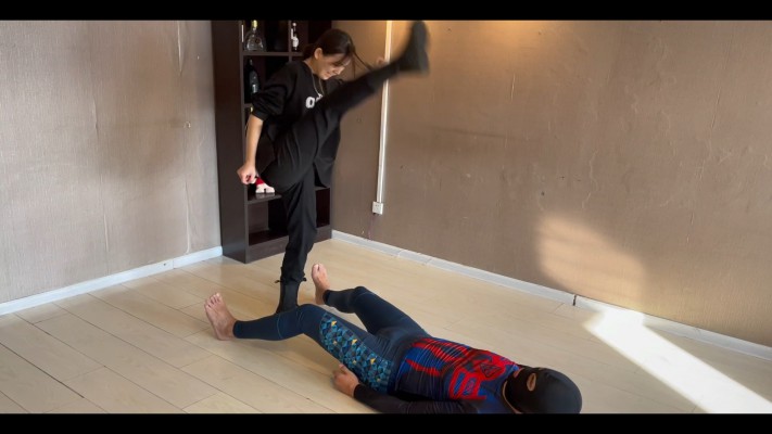 内容:女教练上完女子防狼课后陪着女学员一同逛街回家,刚好路上遇到一个猥琐男,猥琐男想要占便宜,不料却被当成了活靶子进行实战人体踢裆训练,最后败倒在两位女生的皮靴之下。