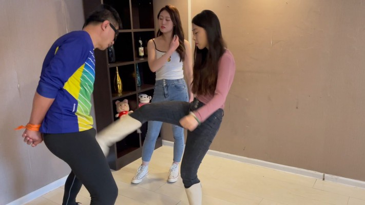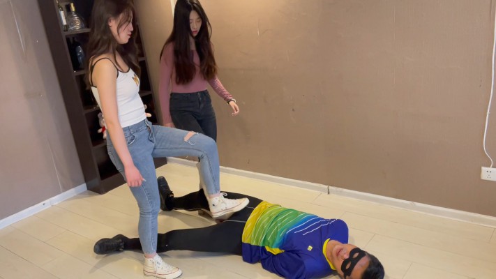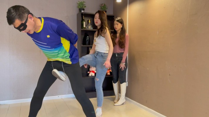内容:两位温柔可爱的小姐姐在公园闲聊,忽遇猥琐夜跑大叔路过,对两位美女新生歹意想到上前非礼,不料被雯雯女主踢裆制服后捆绑起来,雯女主带领着闺蜜对猥琐大叔进行强击惩治,最后大叔被两位女主废掉丢在一旁。