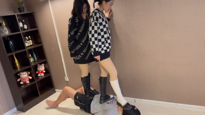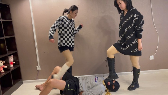 内容:两位御姐系女大学生主,穿着凶狠的过膝皮靴,对图谋不轨的变态男进行惩治,本片两位女主虽说是第一次出演,不过踢裆力度绝对算是超级重度的,踢裆、耳光、踩踏、爆踹,最后变态昏死过去。