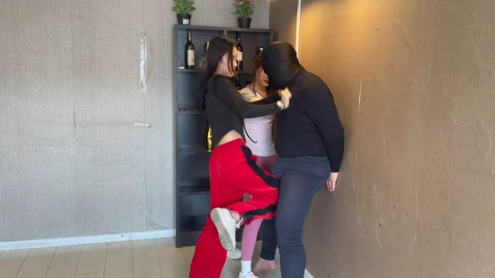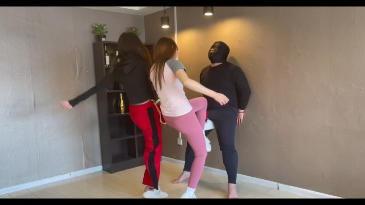 内容:两位惩奸除恶的女侠客,逮住一名作恶多端的变态色男,将其制服后展开惩治凌辱,两人换上方便施展腿脚踢击的健身服,对变态进行残酷无休止的重度踢裆、踩踏,以及强制闻鞋袜羞辱,最后倒霉的色男在两位美女的脚下一命呜呼。。。